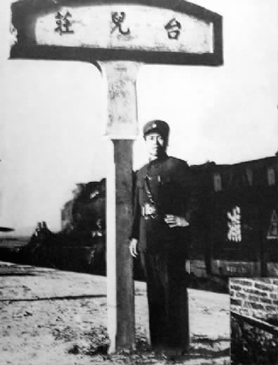 李宗仁在台儿庄火车站留影。