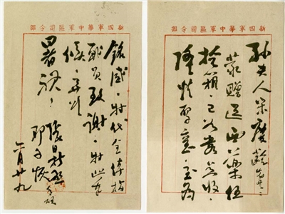新四军华中军区司令部邓子恢、张鼎丞就收到50箱药品事宜,致函宋庆龄表示感谢。
