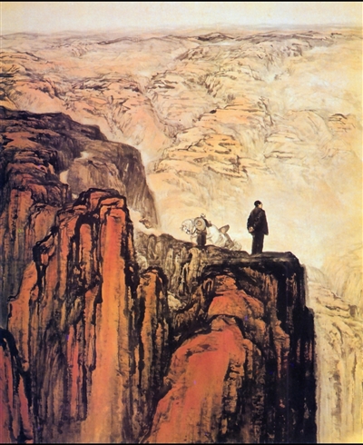 《转战陕北》以高远的意境建构画面,以壮丽山川写形,且铸魂。成功地描绘出伟人运筹帷幄,瞻望、沉思的泰然气派。画家在借西北山川的雄浑气势比喻革命事业的伟岸和崇高。这也是新中国美术史学上一幅意境开阔、气势宏伟的画作。石鲁情致所然,“以意写之”。本质上是诗意现实主义画作的重要代表。