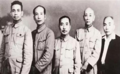 参加中国人民政治协商会议第一届全体会议的致公党代表合影,从左至右:雷荣珂、黄鼎臣、陈其尤、官文森、严希纯。
