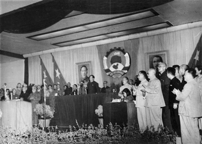 1949年9月21日,中国人民政治协商会议第一届全体会议在北平开幕。右方前排左起第一人为时任致公党主席陈其尤。