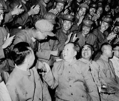 “东方红一号”发射成功7天后的五一劳动节晚上,毛泽东在天安门城楼接见了研制和发射“东方红一号”卫星的钱学森等人,与他们一起看卫星、度良宵,一起收听从遥远太空传来的《东方红》音乐。