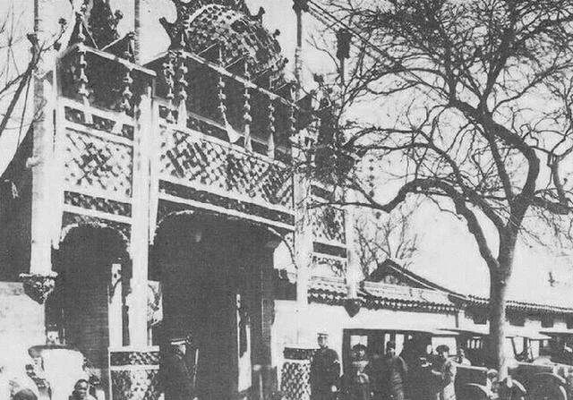 孙中山先生逝世后,治丧处在其位于北京铁狮子胡同5号的行辕内设灵堂,供人前往吊唁。图为行辕门前场景。