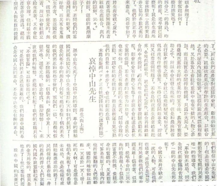 1925年4月11日,《台湾民报》刊登台湾进步青年翁泽生悼念孙中山先生的文章。