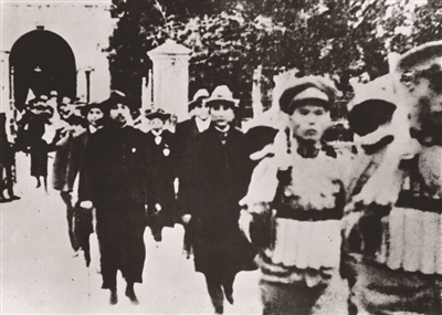 图为国民党第一次全国代表大会在广州召开时,代表们步出会场