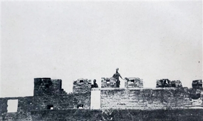 西直门楼上,穿着深黄色军服的日兵,箕踞在雉堞上,倚着枪,咧着厚厚的嘴唇,露着不整齐的牙齿,下视狂笑。