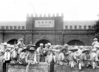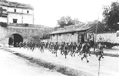 驻守宛平城的中国军队奔赴卢沟桥抵抗日军。