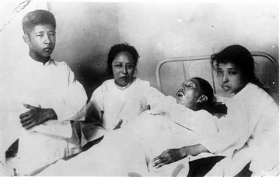 1925年8月20日,国民党右派指使暴徒暗杀了廖仲恺。这是何香凝及子女守护在廖仲恺遗体旁。