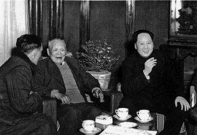 许德珩夫妇如约前往,毛泽东已站在门外相迎,他一手拉着许德珩,一手拉着劳君展说:“想不到我们在这里见面了。”原来,早在20多年前,毛泽东就和许德珩相识。才及落座,两人便开始畅谈起当年在北京大学时的情景,回忆参加少年中国学会与北大平民教育讲演团的一些事情,又谈了阔别后的经历。随后毛泽东风趣地说:“你们知道,我这个人怎么会打仗呢?我是逢山开路,遇水搭桥啊。”话音一落,大家就都会意地笑了起来。