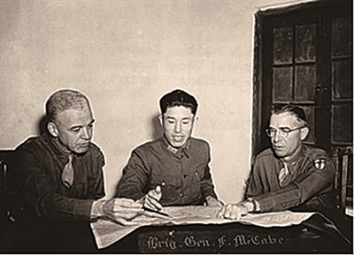1943年11月,郑洞国与两位美军准将商议军务。