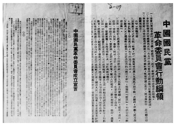 1948年1月4日,香港《华商报》上刊登的《中国国民党革命委员会成立宣言》和《行动纲领》。