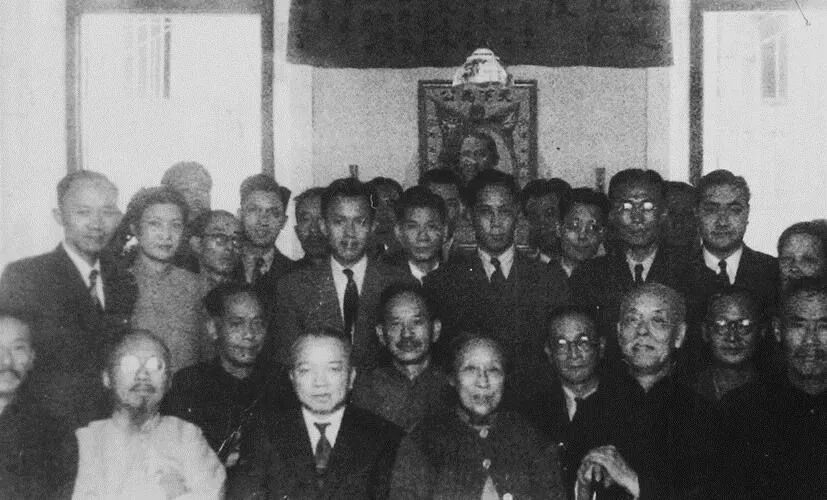 1948年1月1日,中国国民党革命委员会在香港宣告成立。图为民革中央部分同志在香港合影。前排左起:朱蕴山、柳亚子、蔡廷锴、李济深、张文、何香凝、彭泽民、王葆真;中排左第二人起:郑坤廉、梅龚彬、刘遐翚、张克明、冯伯恒、李子诵、陈其瑗,右一为周颖。