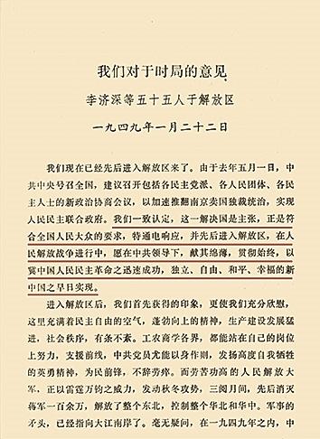 ——李济深等55人《我们对于时局的意见》,1949年1月22日