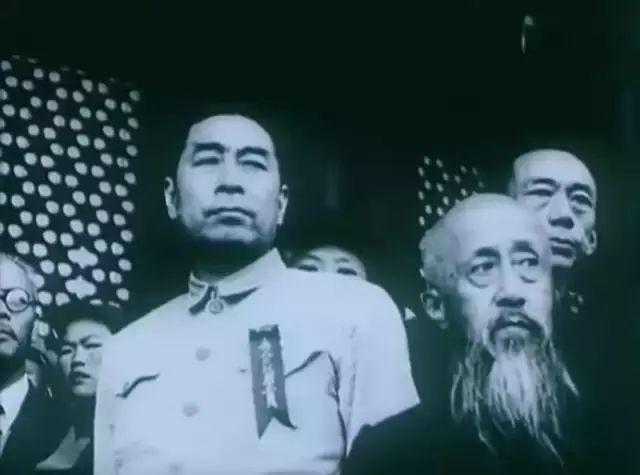 周恩来、沈钧儒在天安门城楼上观看开国大典
