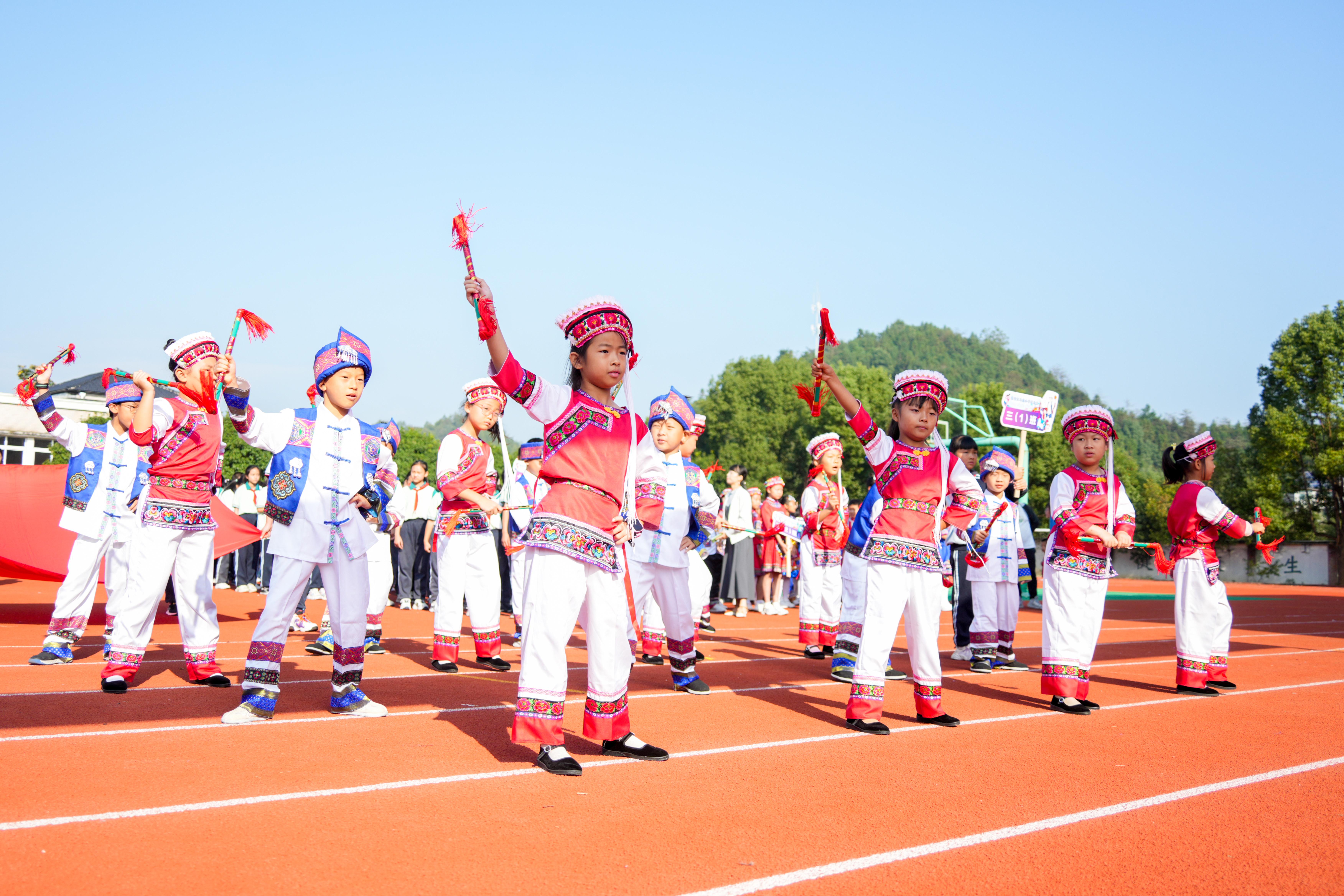 近日,玲珑小学举行第35届运动会,竹鼓舞、蹴石磉、瑶族舞轮番上演,一次次精彩表演将现场气氛推向高潮,同学们也乐在其中。 (王丹丹)
