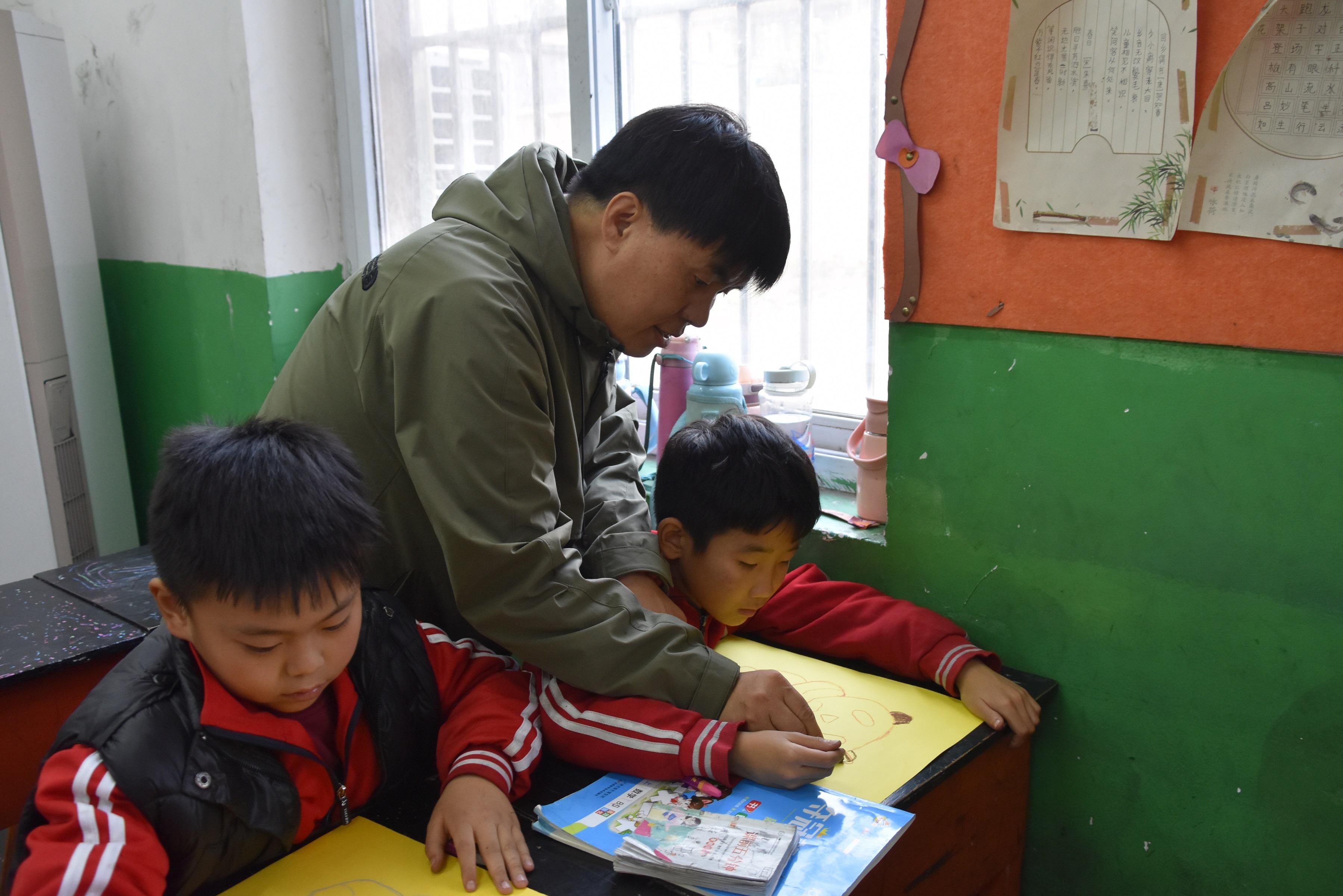 11月8日,民盟河北省邯郸市委会赴邯郸市肥乡区赵寨村举行画像捐赠仪式和“美育进校园”活动。书画家们走进教室,为赵寨小学学生开展“绘画示范课”和“硬笔书法示范课”。图为老师带着孩子们一起创作国宝大熊猫,为学生们讲授绘画的方法与技巧。(盟邯轩)