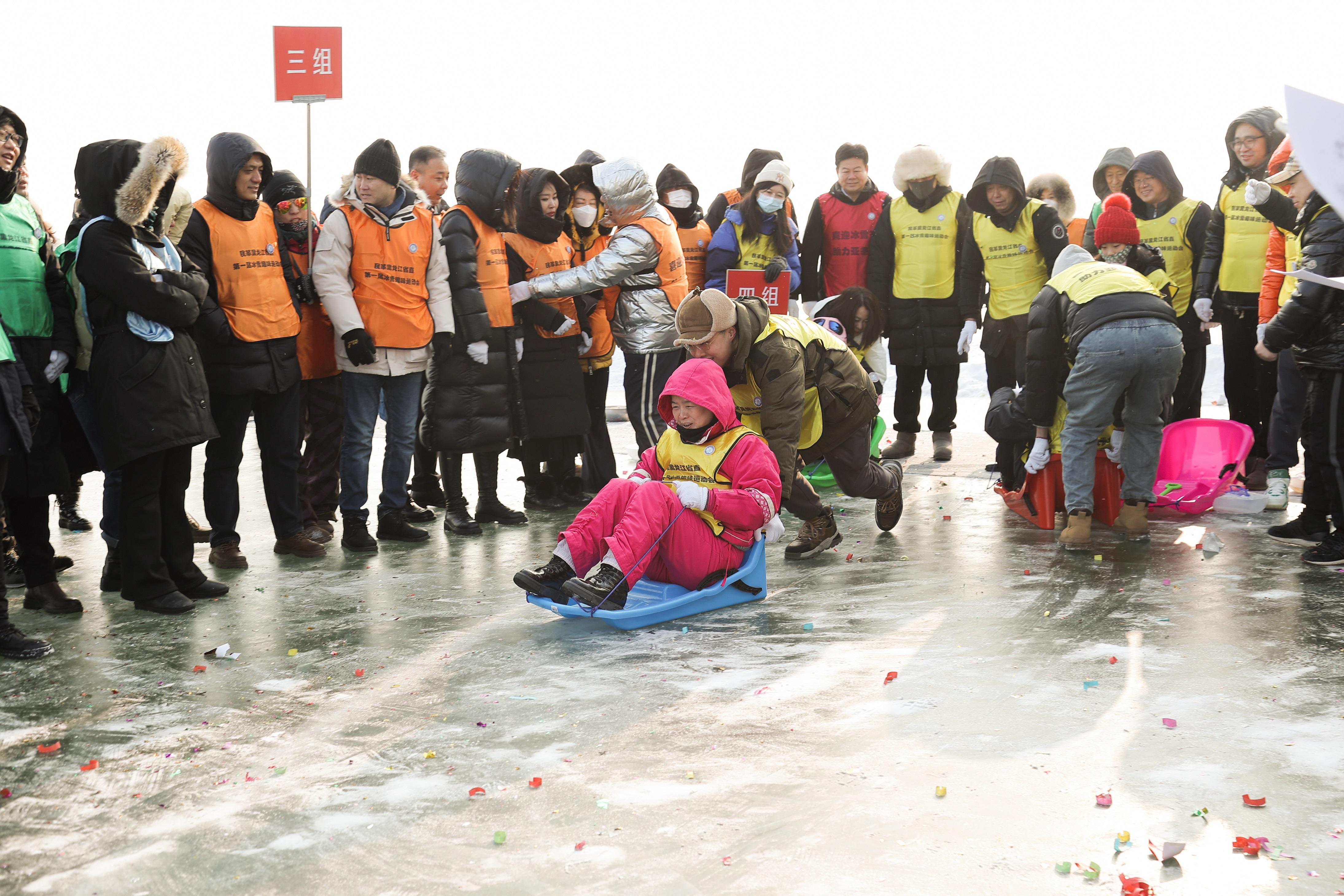 1月5日,民革黑龙江省直第一届冰雪趣味运动会举行。十六个省直支部的一百余名民革党员参与四个冰雪项目的角逐,共同庆祝哈尔滨国际冰雪节开幕。(特约通讯员 左洪佳 通讯员 邹朝旭 摄)