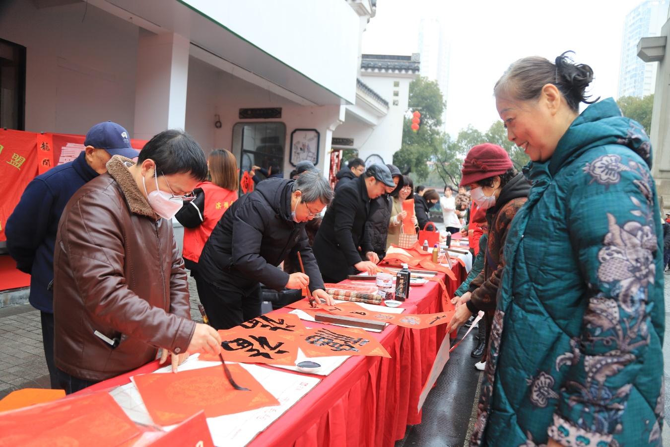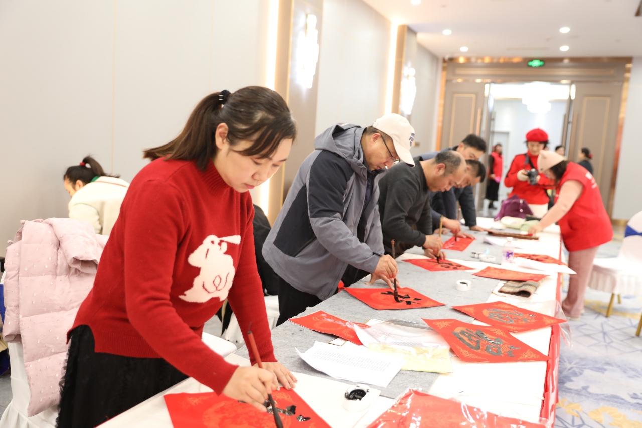 1月15日,九三学社湖北省荆门市委会社会服务部社员和九三荆门书画院艺术家与荆门市残联、市义工联一起开展龙年迎新春文艺活动,为残障人士书写春联、福字,祝愿他们龙年吉祥。(彭娇妍)