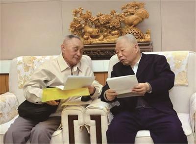 2017年2月23日,张克辉和老盟员黄幸在纪念台湾人民二二八起义七十周年活动中坐在一起回忆往事。