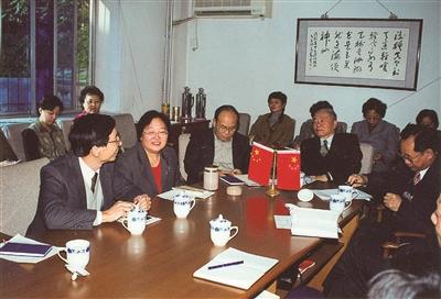 至于具体是哪天他正式到台盟中央机关办公的,我记不清了,但记得那天天气好,风和日丽,他拉开窗帘,看着小庭院内的景色。张主席时刻关注着台湾岛内的形势发展变化,思考着台盟应该及时跟进的工作。有一年元旦过后不久,他找我说:近期岛内“文化台独”甚嚣尘上,今年台盟中央在全国政协大会上的发言,就以反“文化台独”为题。正当我积极着手准备时,没过几天,他给我送来了他亲自起草的大会发言稿。