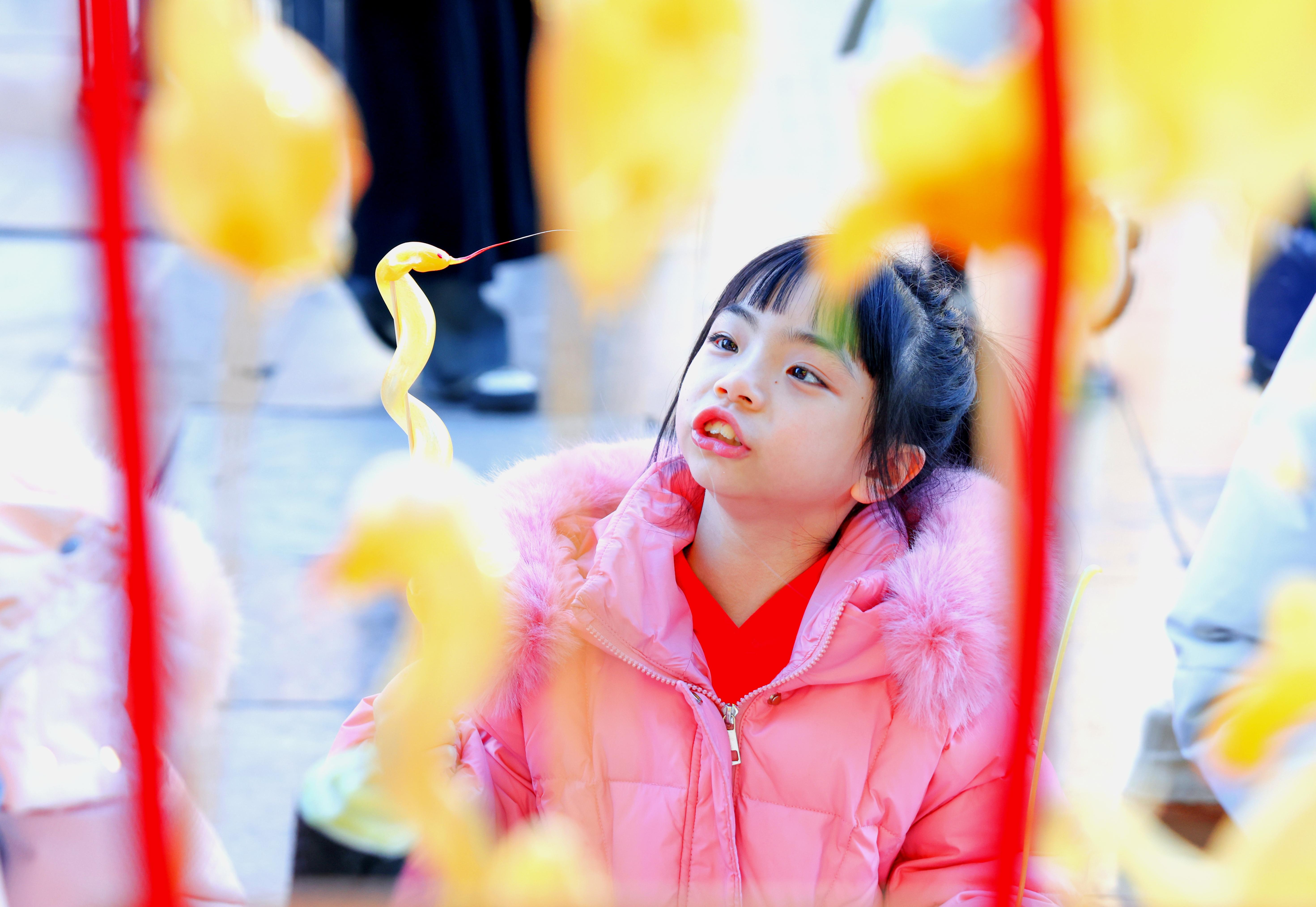 近期北京文旅市场迎来寒假客流,研学游、亲子游、冰雪游继续火热。图为1月24日,来自江苏的小朋友观看非遗传承类项目吹糖人,感受传统非遗文化的魅力。 (靳祖保 摄影报道)