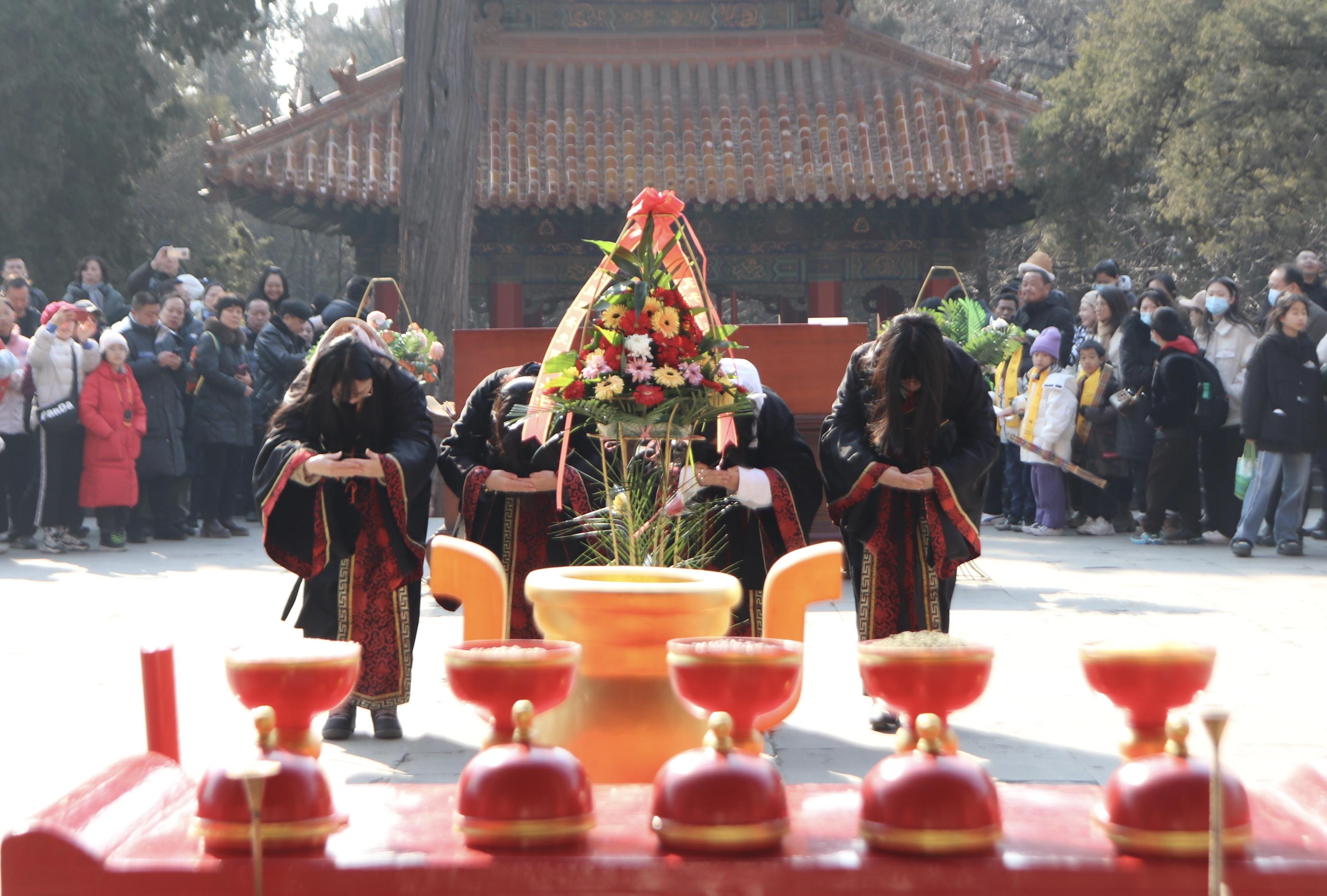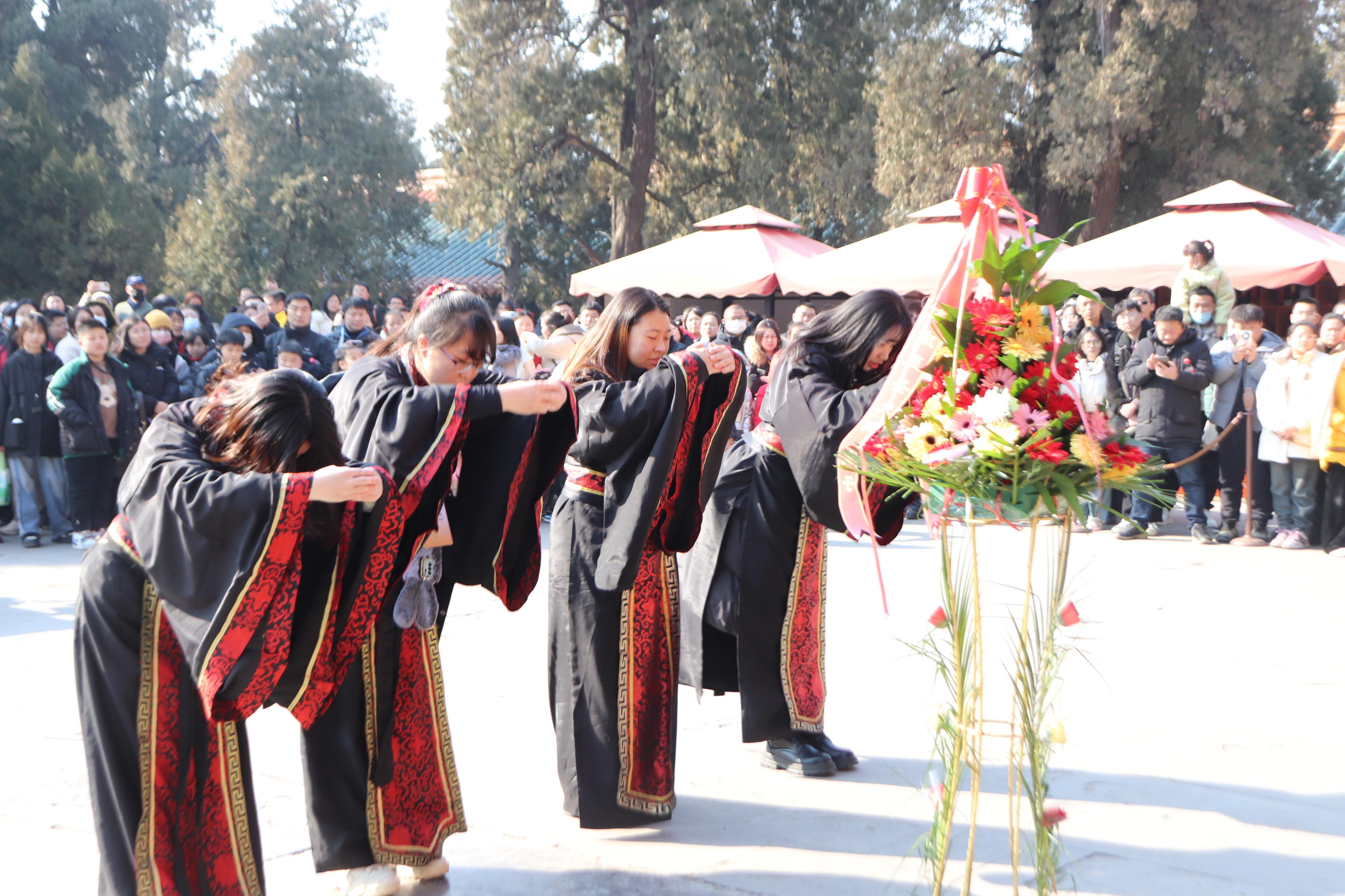 1月28日,参与2024年全国台联第三十届台胞青年冬令营山东分营的台湾青年学生行至山东曲阜,来到曲阜孔庙参加祭孔仪式,感受儒家文化。(李明芮)