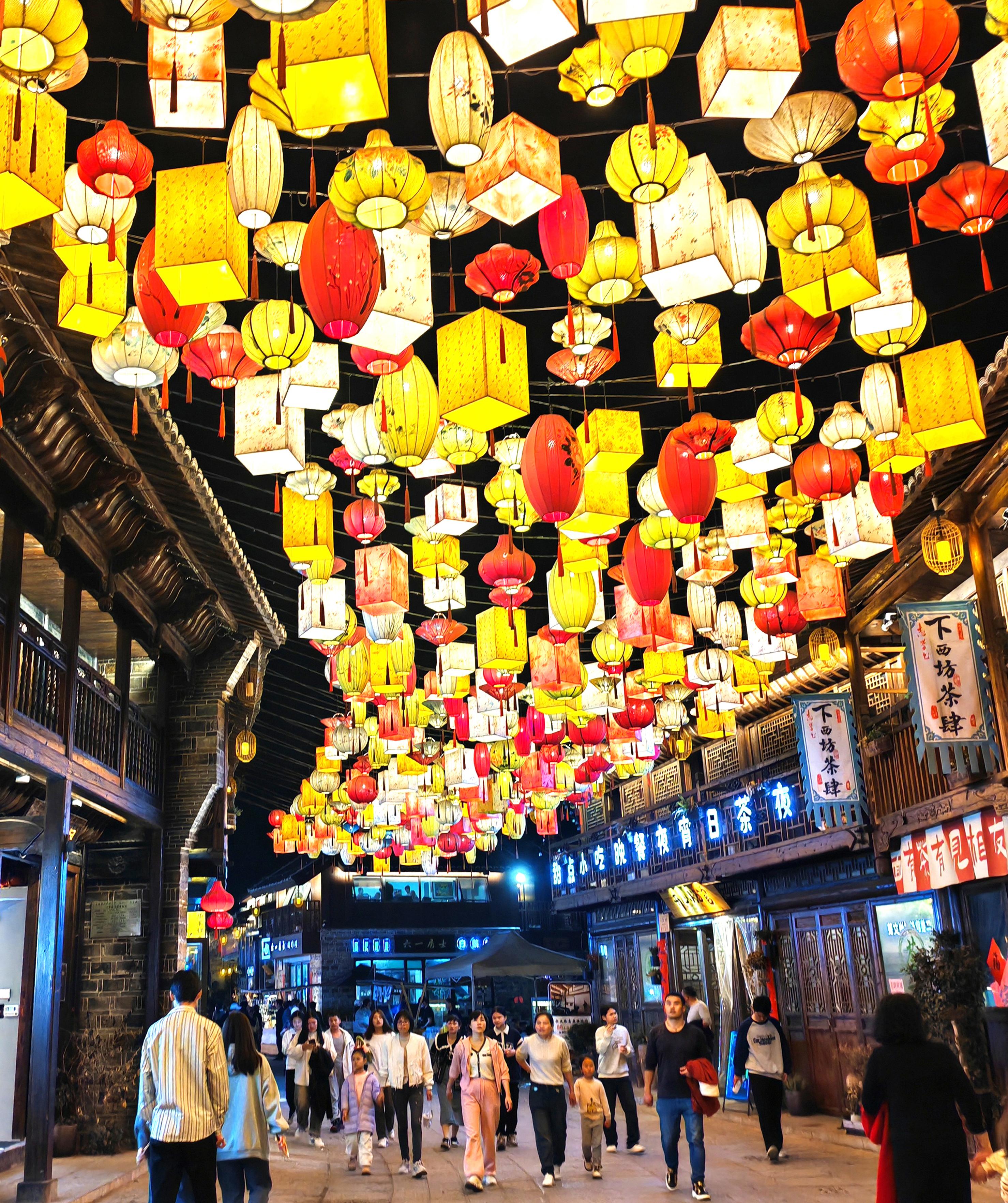 2月20日晚,人们在江西省吉安市永丰县下西坊历史文化街区彩灯巷游玩。元宵佳节临近,永丰县下西坊历史文化街区的花灯璀璨绚烂,将老街装扮得亮丽多彩,处处洋溢着浓浓的节日气氛,为人们奉上了一道视觉盛宴。(刘浩军)