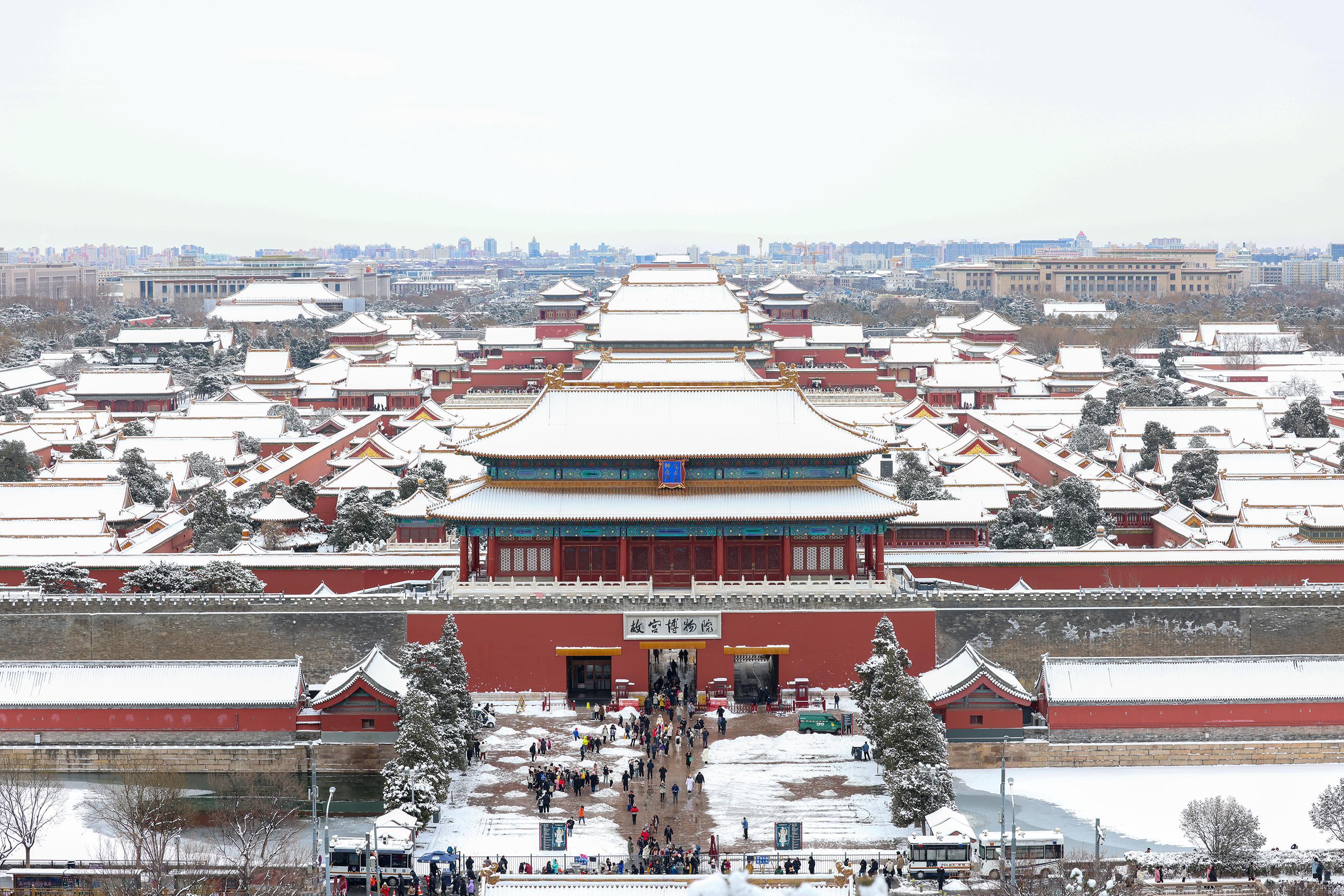 2月21日上午,在景山公园俯瞰雪后故宫。