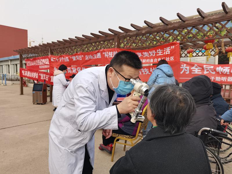 2月27日,全国第25个爱耳日来临之际,民革河北省唐山市委会联合唐山市妇幼保健院、路北区残联、路北区钓鱼台办事处、聆之语听力语言康复中心等多家单位,在路北区电厂工房社区开展全国“爱耳日”科普义诊活动。图为医疗专家为社区居民开展义务诊疗。(裴莉珊)