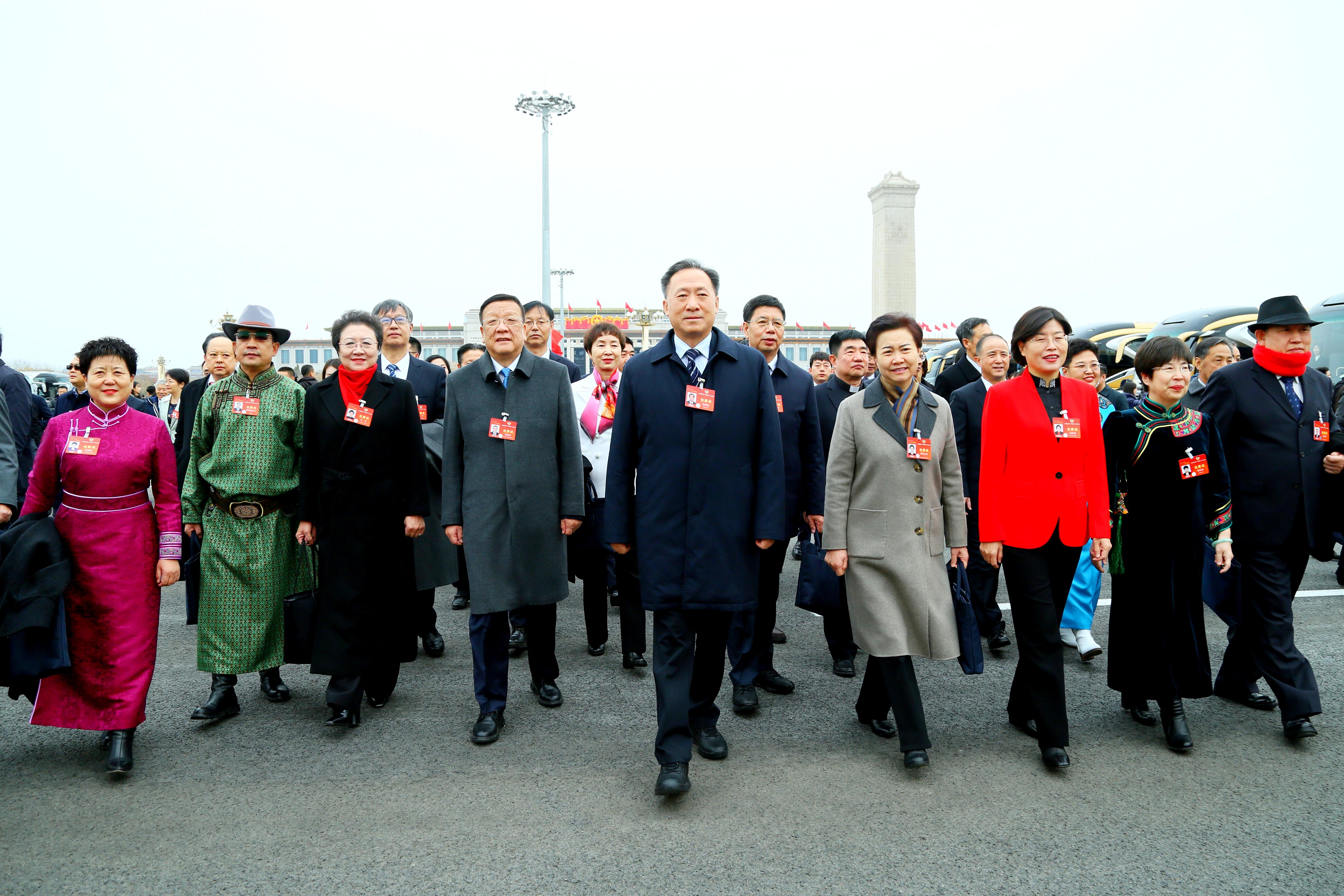 3月4日,全国政协十四届二次会议在京开幕。图为开幕会前,委员们昂首步入会场。