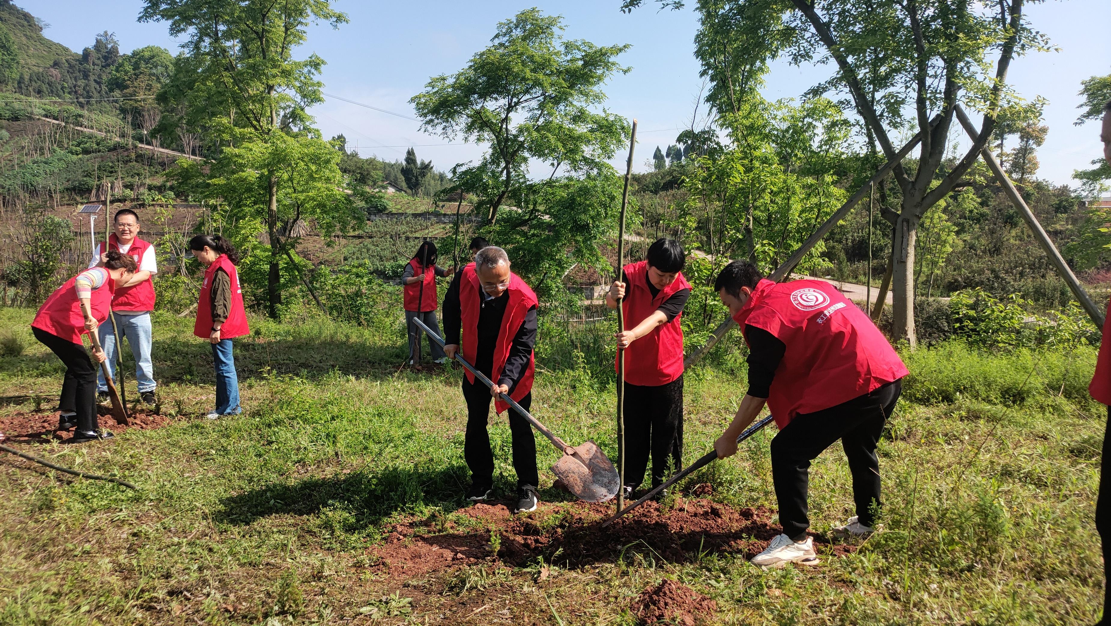 4月12日,农工党四川省达州市委会在达州区赵家镇组织开展“‘同心生态’心手相牵共植新绿”义务植树活动。