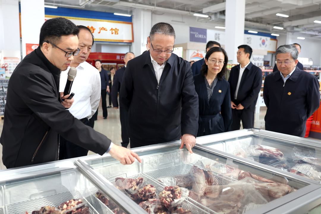 4月17日,调研组在郑欧班列进口商品展示体验中心调研。