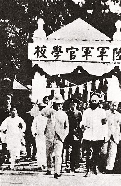 1924年7月,孙中山、廖仲恺视察黄埔军校。