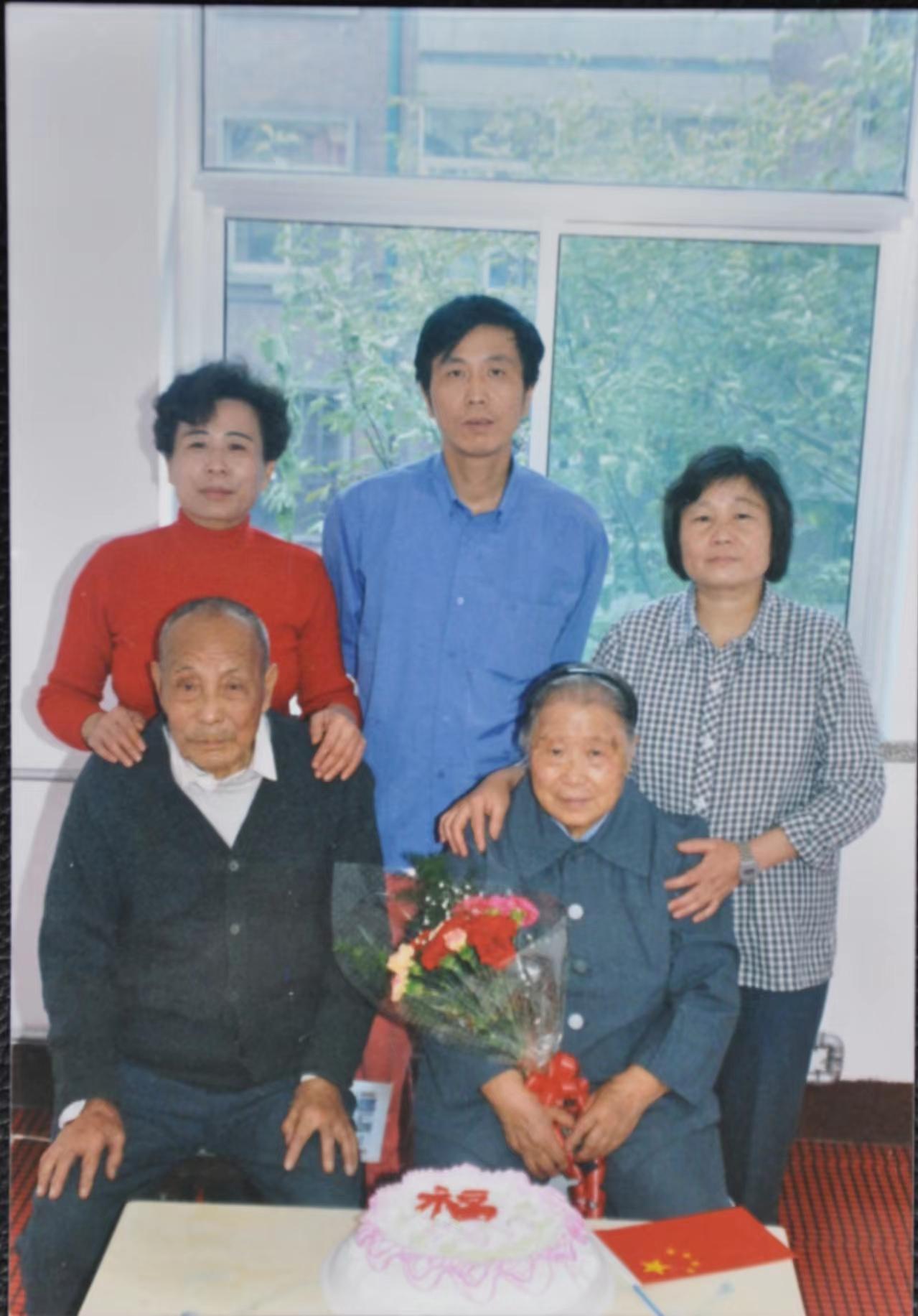 毛颖青(后排左一)与父亲毛鸿基和母亲(前排坐着)以及兄弟姐妹合影。