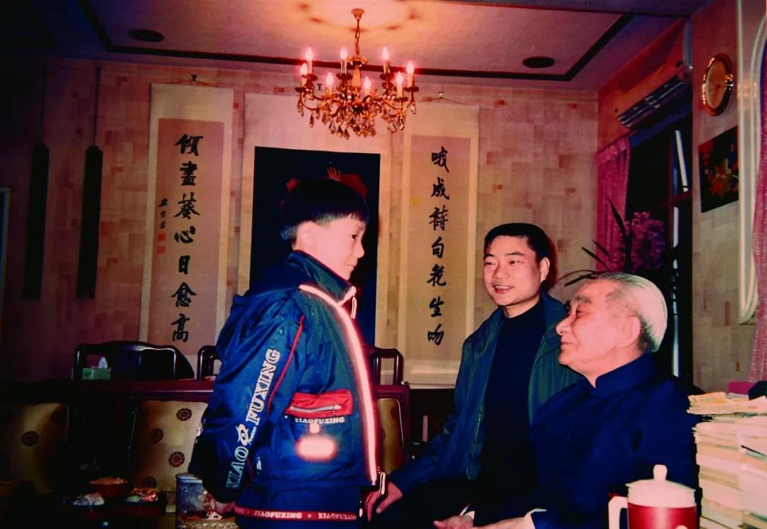 2002年春节,南品仁(中)带着儿子南烨与南怀瑾(右)见面。