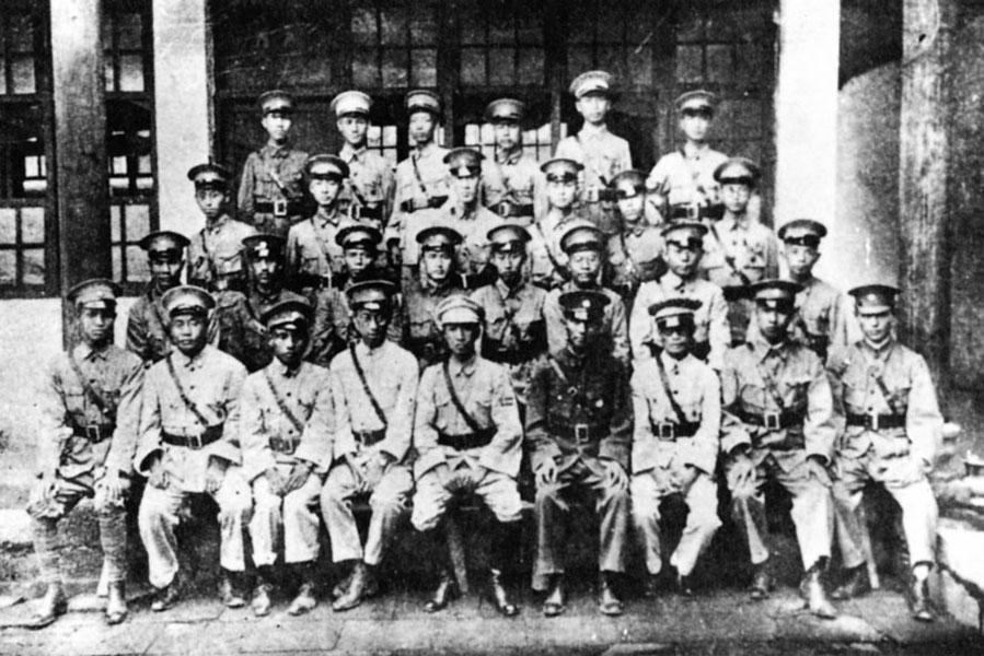 1927年,邓演达(前排右四)与国民革命军政治部全体人员。