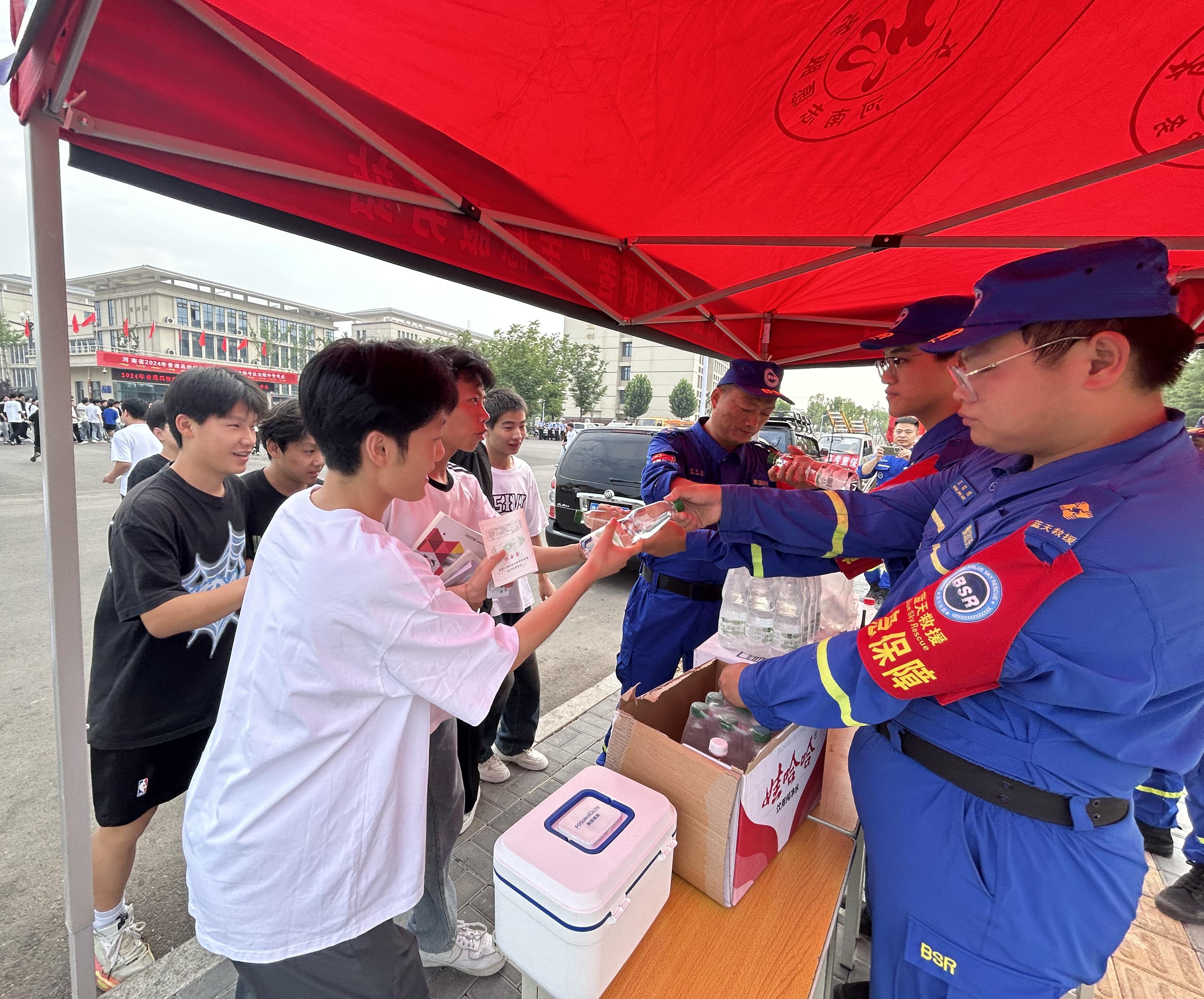 6月7日至8日,中共河南省洛阳市汝阳县委统战部、汝阳县“新联会”组织“神鹰”救援、“蓝天”救援、心理咨询、医疗服务等相关方面专业人士,在当地各大高考考场附近设立“助力高考服务点”,为广大考生准备矿泉水、常见急救药物和应急车辆。(高庆立 摄影报道)