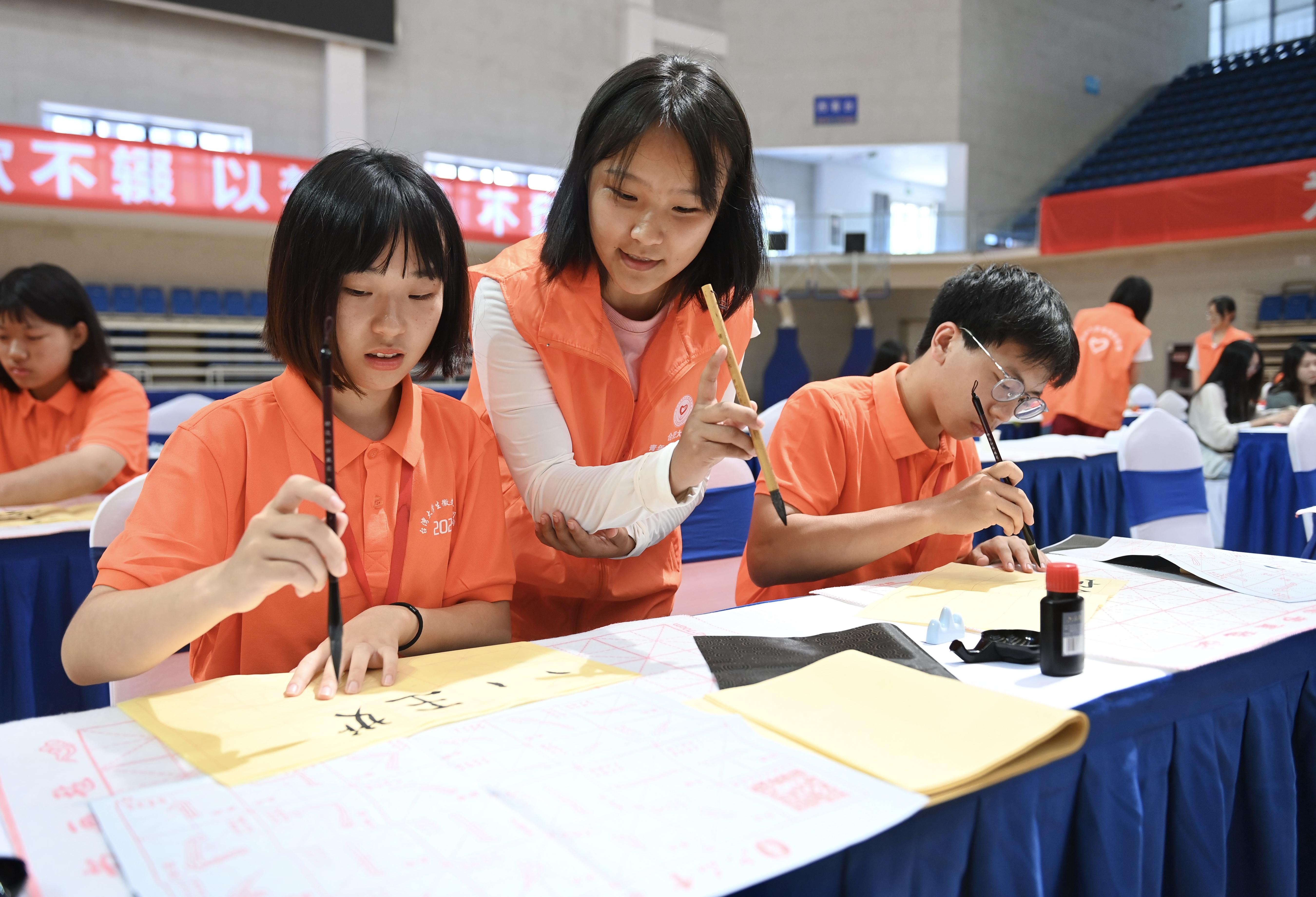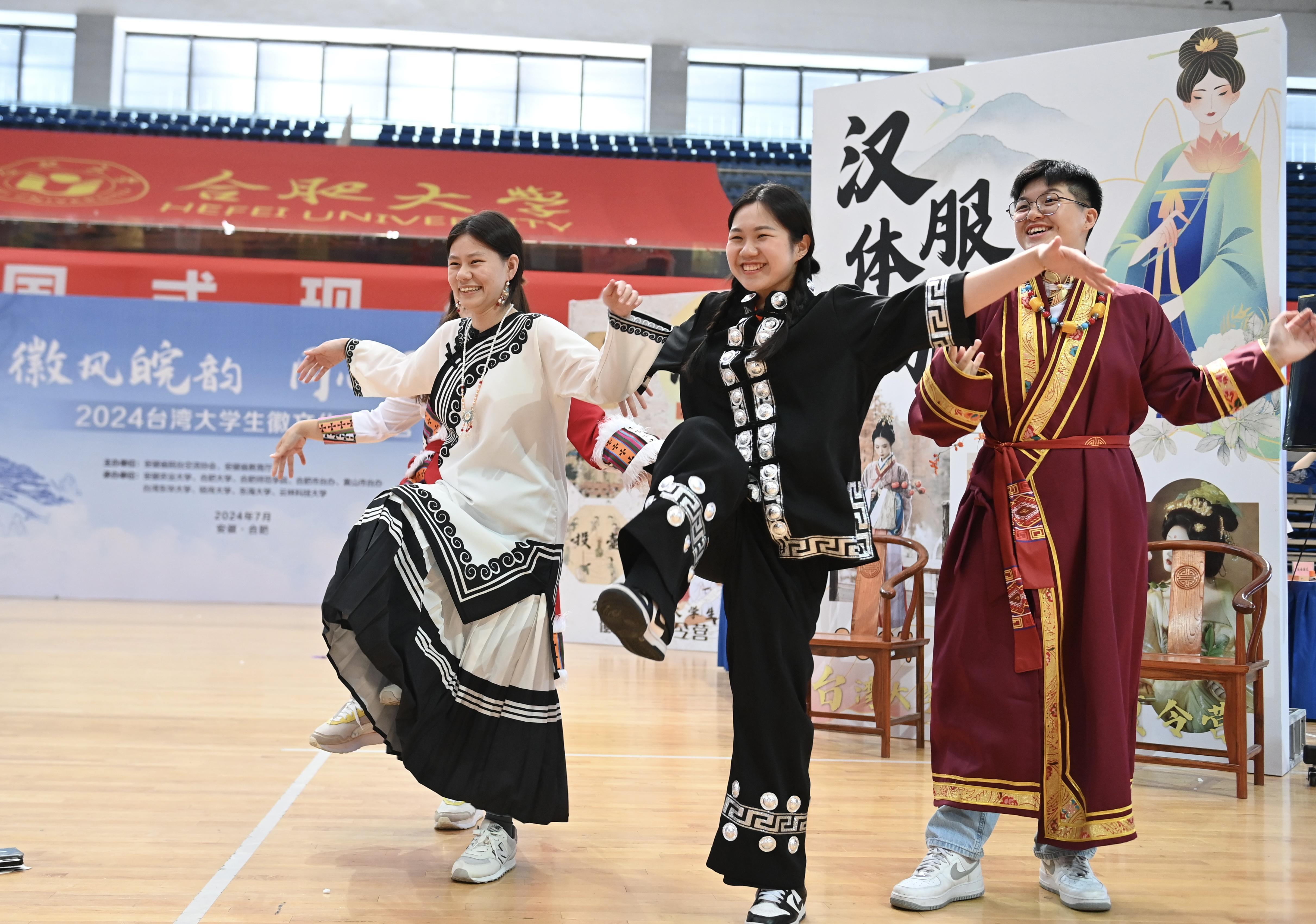7月5日,2024年皖台青年交流活动启动仪式暨台湾大学生徽文化夏令营开营式在合肥举行,来自台湾的70余名青年师生走进安徽,体验传统文化。(韩苏原)