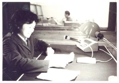 李玲虹在用闽南话向台湾岛内乡亲广播