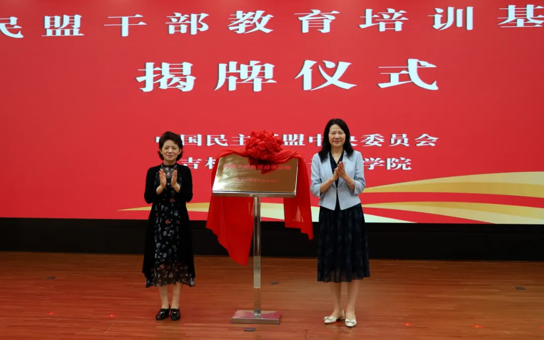 会议期间,霍金花、杨安娣共同为在吉林杨靖宇干部学院建立的“民盟干部教育培训基地”揭牌。