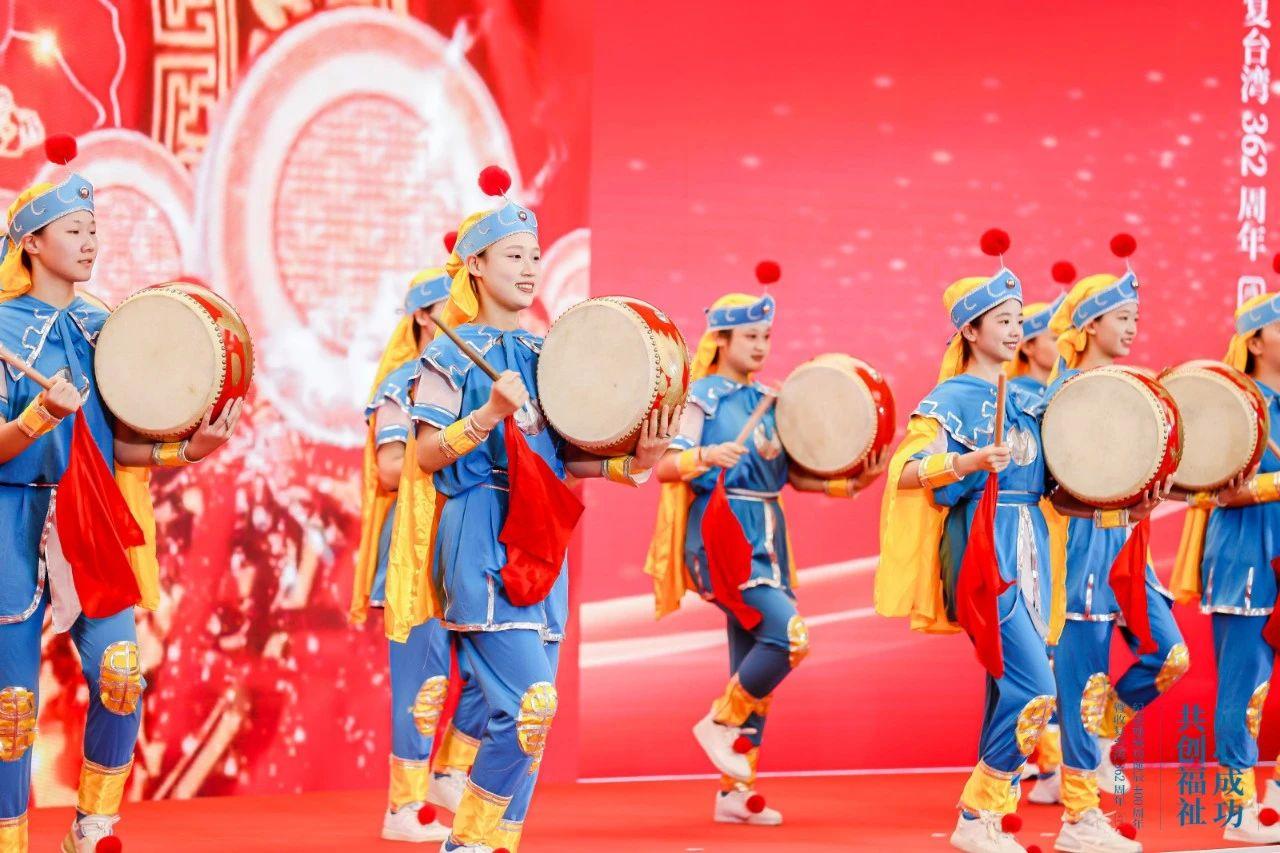 来自福建南平的青年大学生表演“延平战胜鼓”