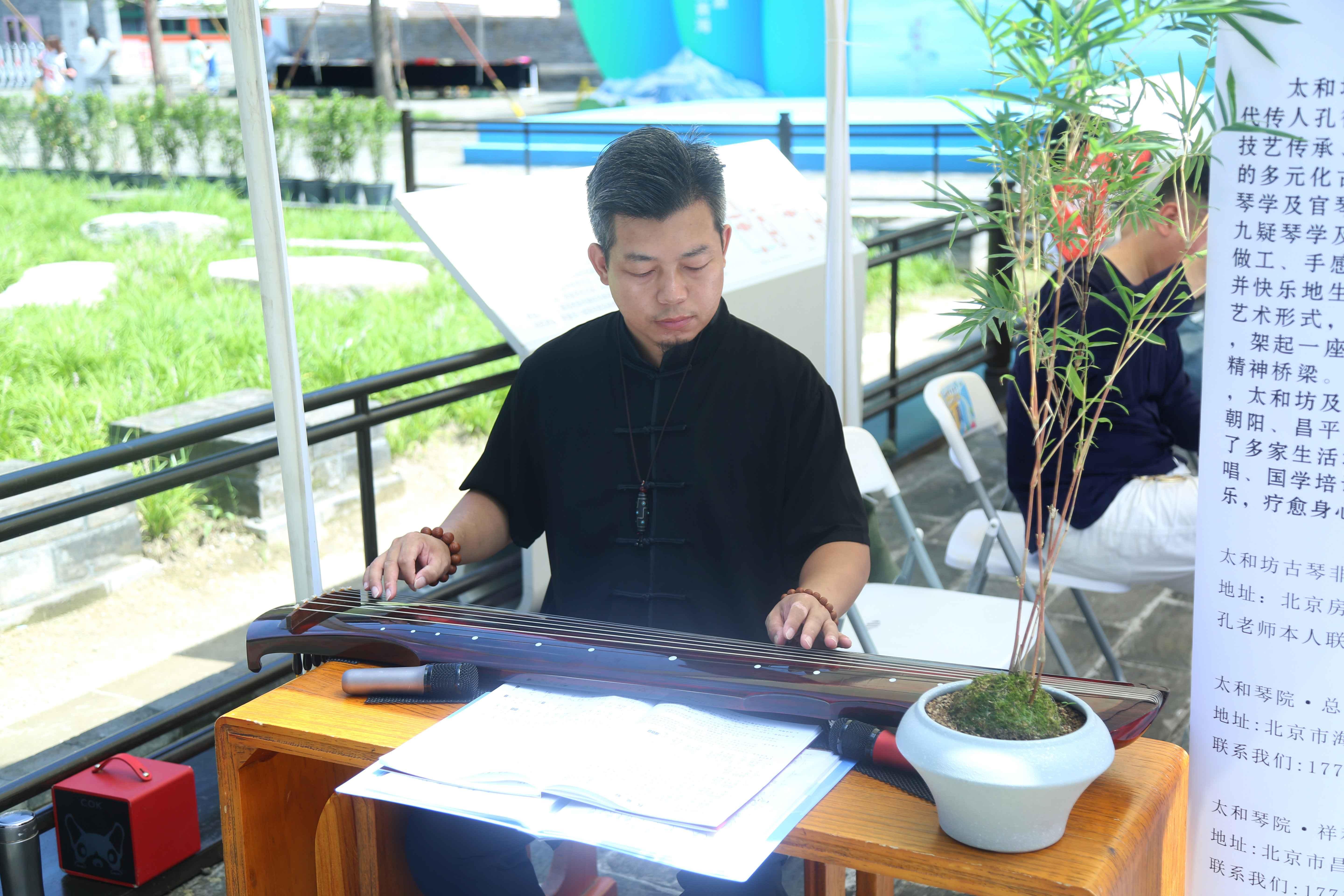 非遗传承人在弹奏太和坊古琴。