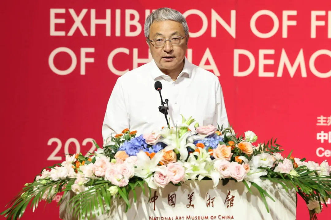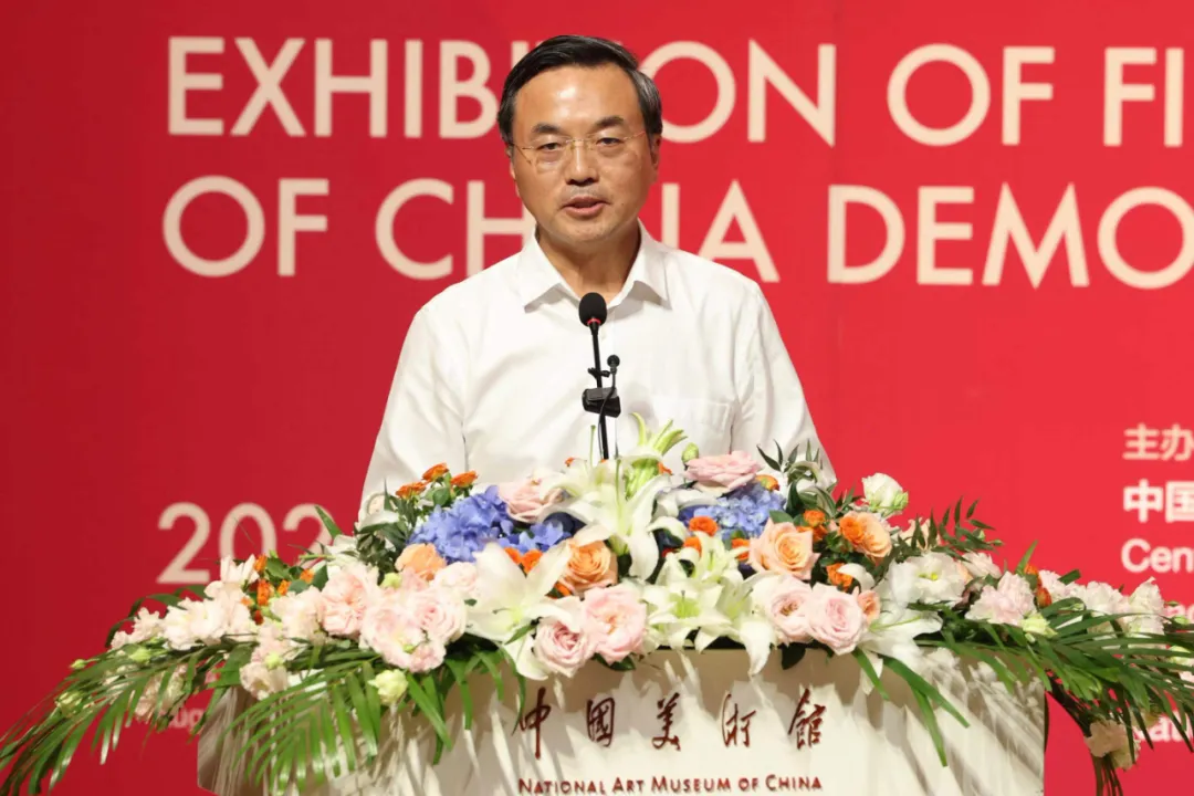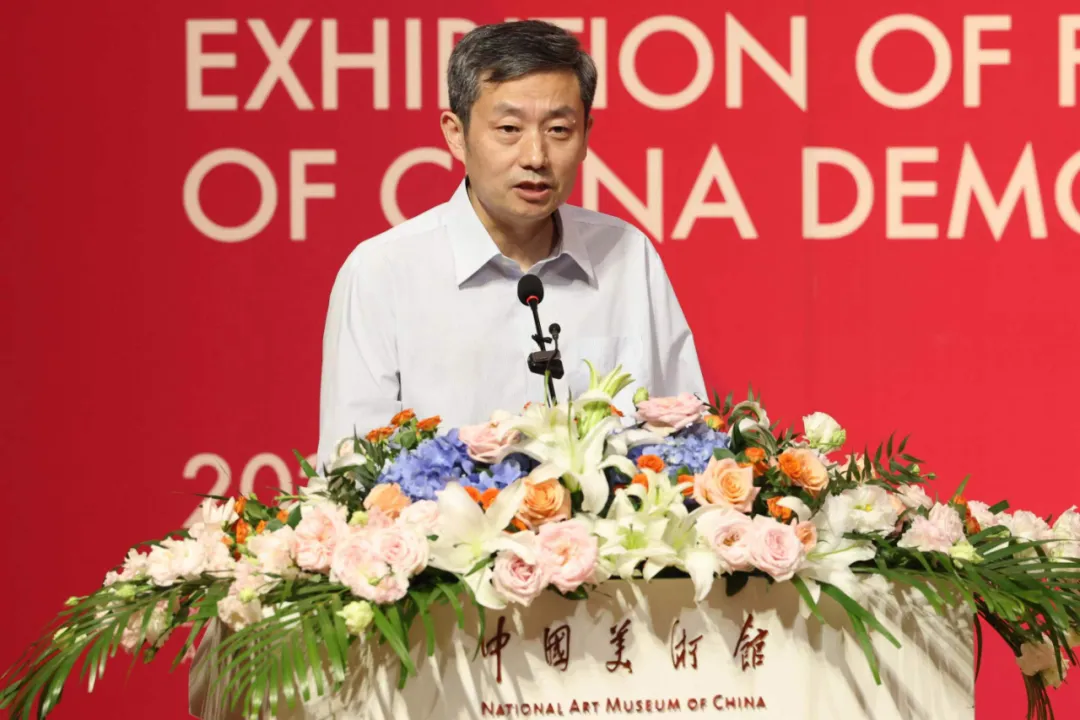 全国人大常委会副委员长、民盟中央主席丁仲礼出席开幕式并宣布展览开幕。全国政协副主席、民盟中央常务副主席王光谦,全国政协副秘书长张茂于,文化和旅游部党组成员、副部长卢映川,中国文联党组成员、副主席、书记处书记诸迪,盟员美术家代表陈振濂、李传真分别致辞。民盟中央副主席徐辉、程红、张道宏、谢经荣,原副主席龙庄伟等领导出席开幕式。全国政协副秘书长、民盟中央副主席、中国美术馆馆长吴为山主持开幕式。