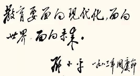 1983年,邓小平为北京景山学校题词:“教育要面向现代化,面向世界,面向未来。”