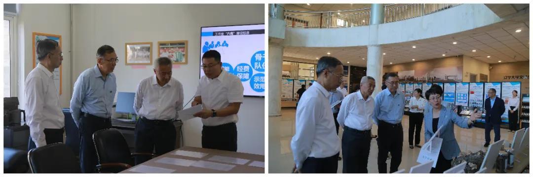 在辽宁大学,邵鸿考察了崔铮咨政建言工作室,参观了校实景教学现场,听取了校党委书记、中国工程院院士潘一山对学校办学情况的汇报。