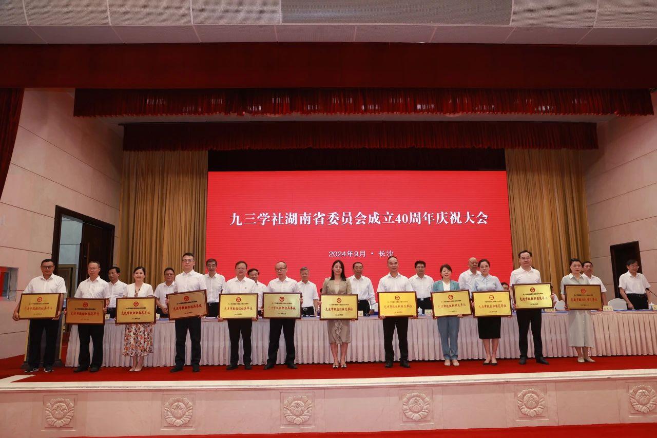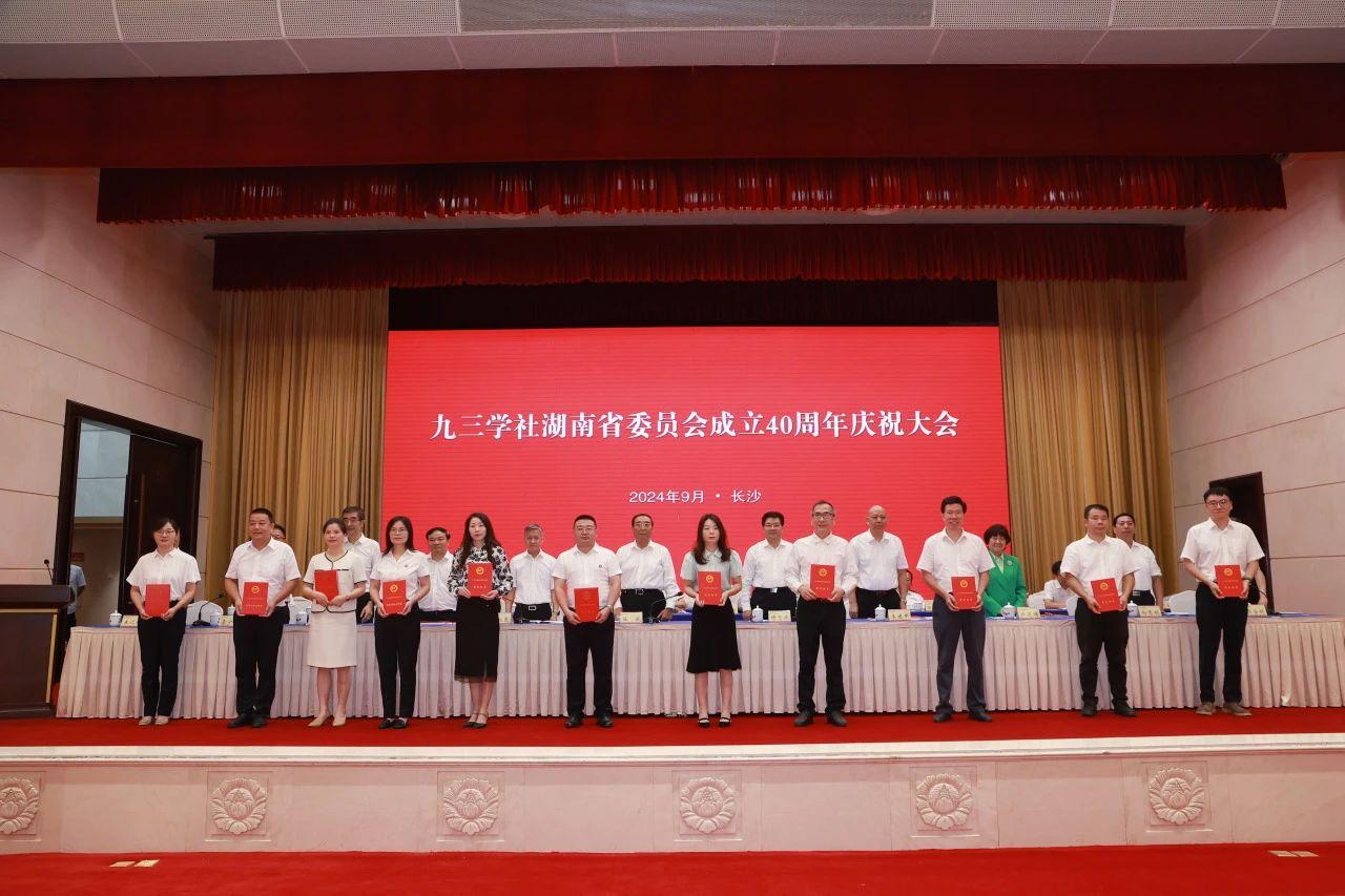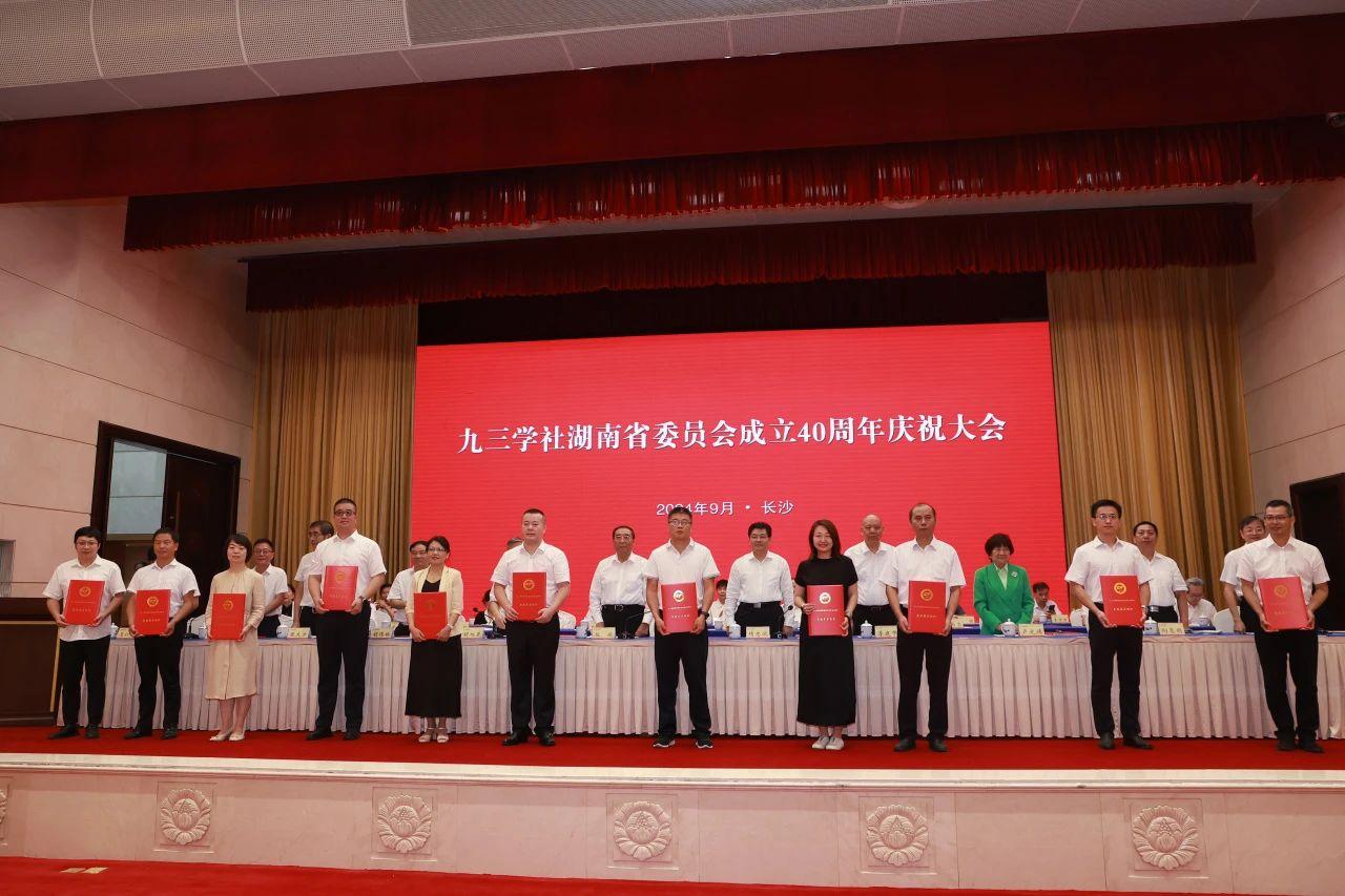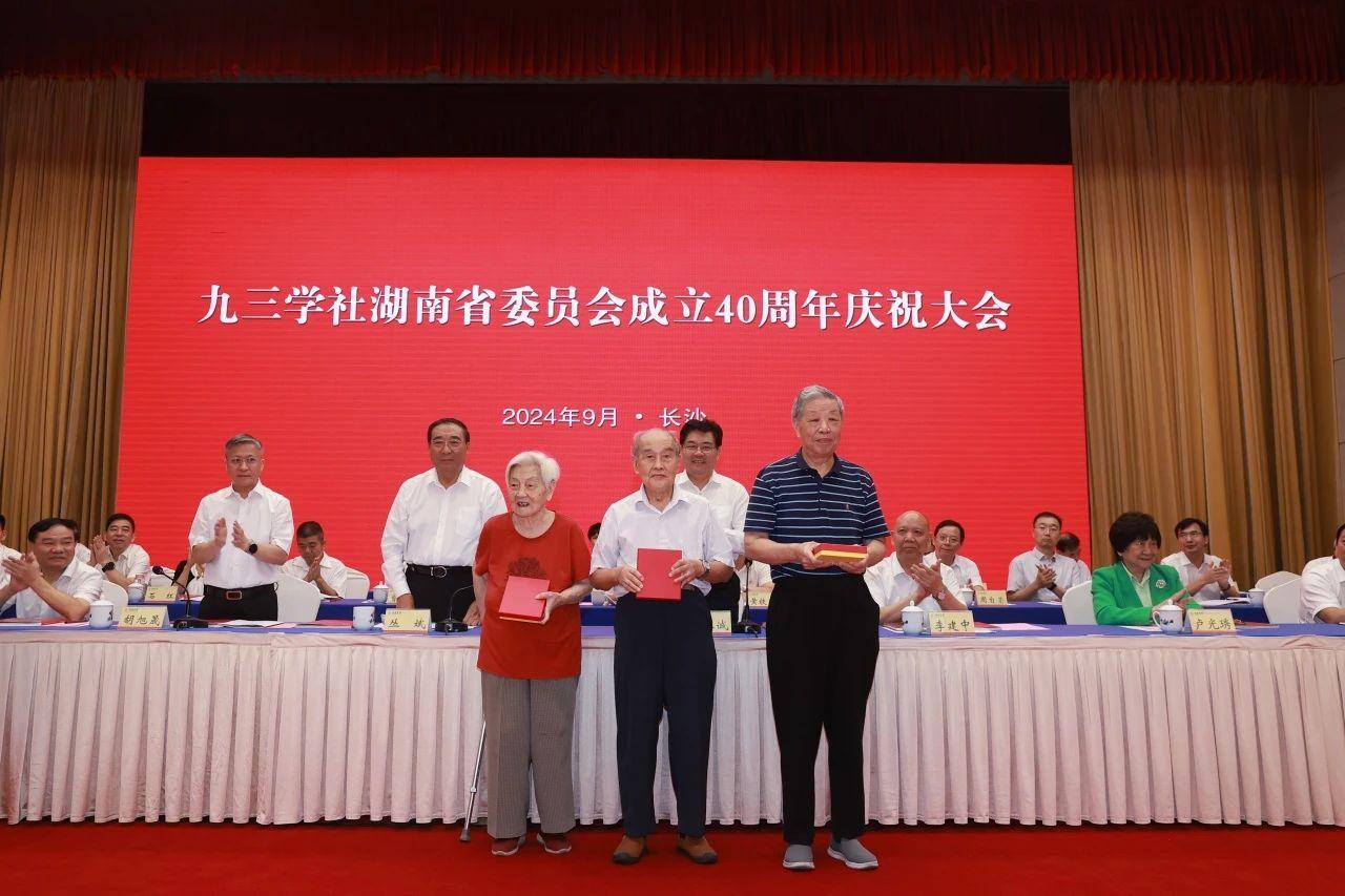 湖南省人民政府党组成员、副省长李建中,湖南省政协党组成员、副主席胡伟林到会祝贺。中共湖南省委统战部副部长向恩明,社省委会老领导卢光琇、张大方等出席。九三学社湖南省委员会专职副主委李少阳受常委会委托作九三学社湖南省委员会成立40周年工作报告。