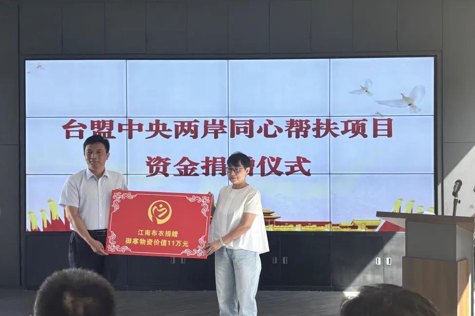 捐赠仪式上,台盟浙江省委会、台盟福建省委会共向赫章县捐赠两岸同心帮扶资金19万元;台盟杭州市第二支部主委,江南布衣生产及采购中心总经理吴立文捐赠服装价值11万元;台盟安徽省总支部、台盟江西省委会向兴发乡光彩小学、野里小学、铁柱小学定向捐款3万元。