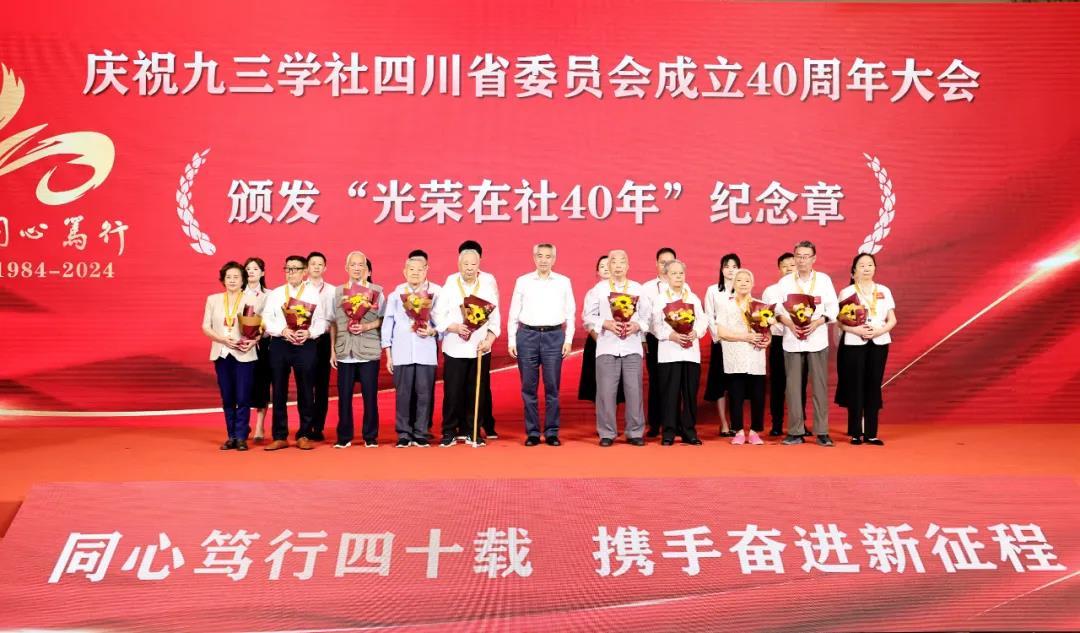 全国政协副主席、九三学社中央常务副主席邵鸿为四川“光荣在社40年”社员代表颁发纪念章。