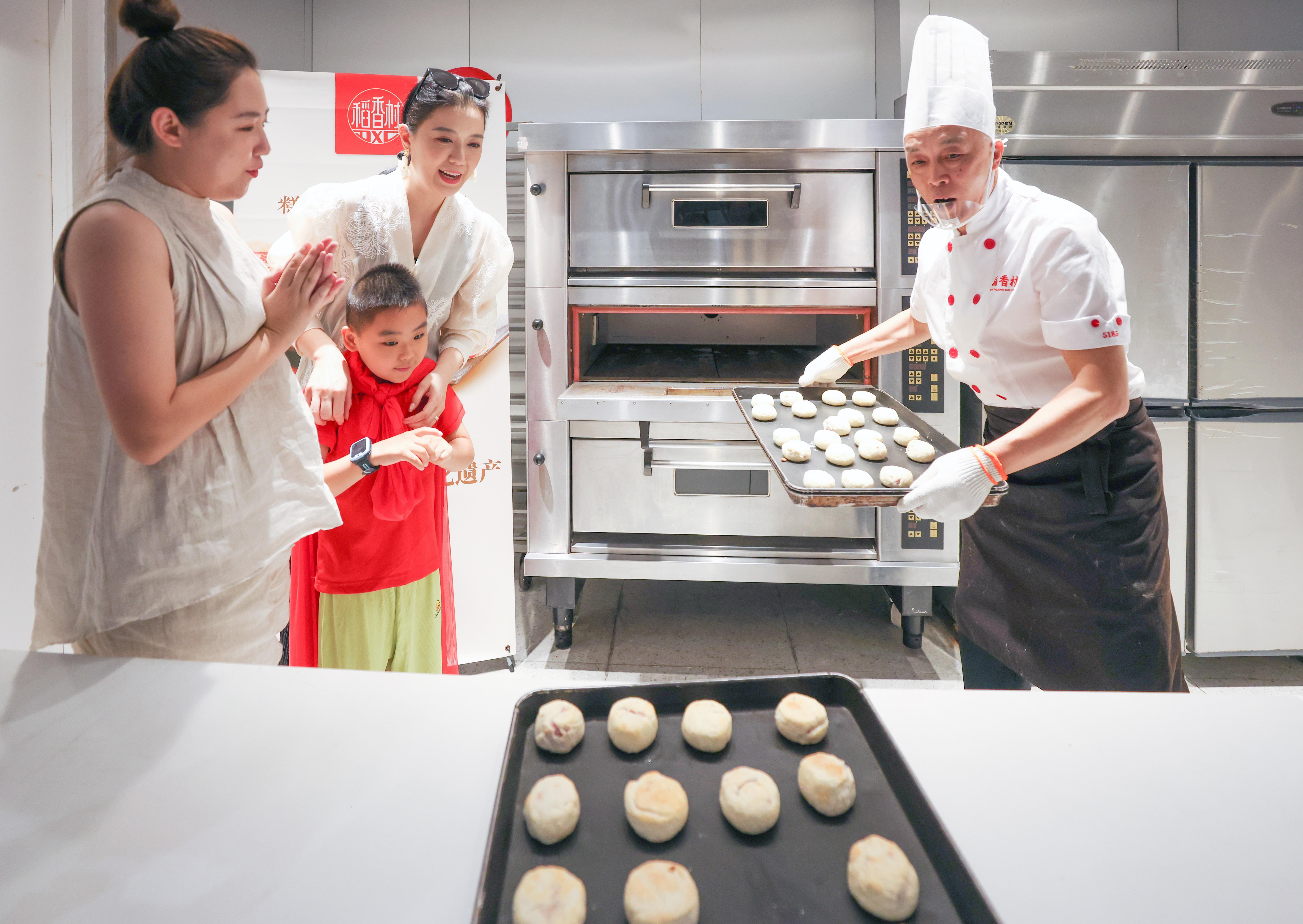9月10日,在苏州稻香村,数十位两岸婚姻家庭成员跟随苏州稻香村传统糕点制作技艺第五代传承人徐红生学做苏式月饼,准备为节日增添几分酥香。