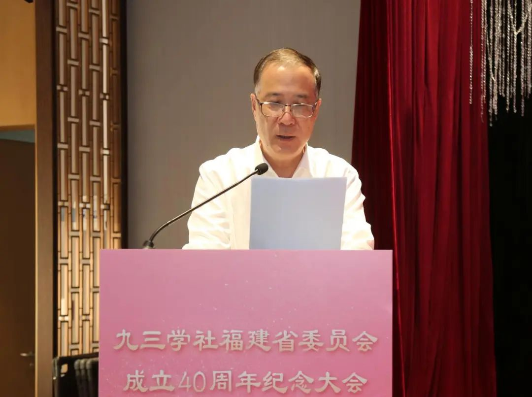 李剑勤代表中共福建省委统战部,向九三学社福建省委员会成立40周年表示热烈祝贺,向九三学社中央表示衷心感谢。她充分肯定九三学社省委会成立以来,围绕中共福建省委、省政府中心工作,积极参政议政,踊跃建言献策,开展民主监督,倾力服务社会,打造工作品牌,加强自身建设,为促进我省经济社会发展作出了积极贡献。她希望九三学社省委会继续强化思想引领、夯实共同思想政治基础,服务改革发展大局、提升参政履职成果质量,始终坚持开拓创新、着力提升自身建设水平,建设有活力、有执行力、更有凝聚力的九三学社地方组织,为新时代多党合作新气象增光添彩。